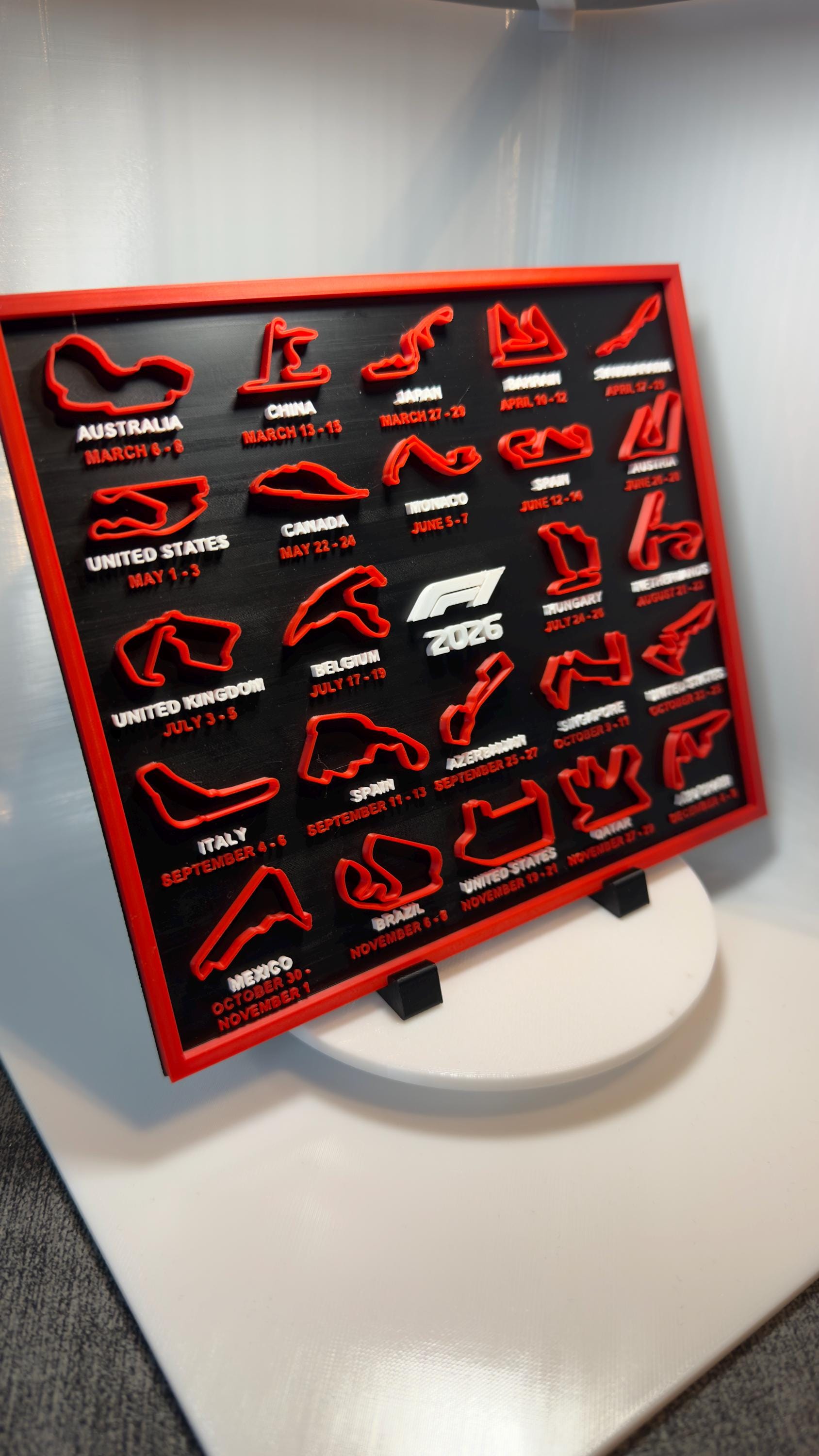 F1 2026 Race Calendar 3D Printed â Motorsport Wall Decor â Race Track Overview â Gift Idea for Racing Fans